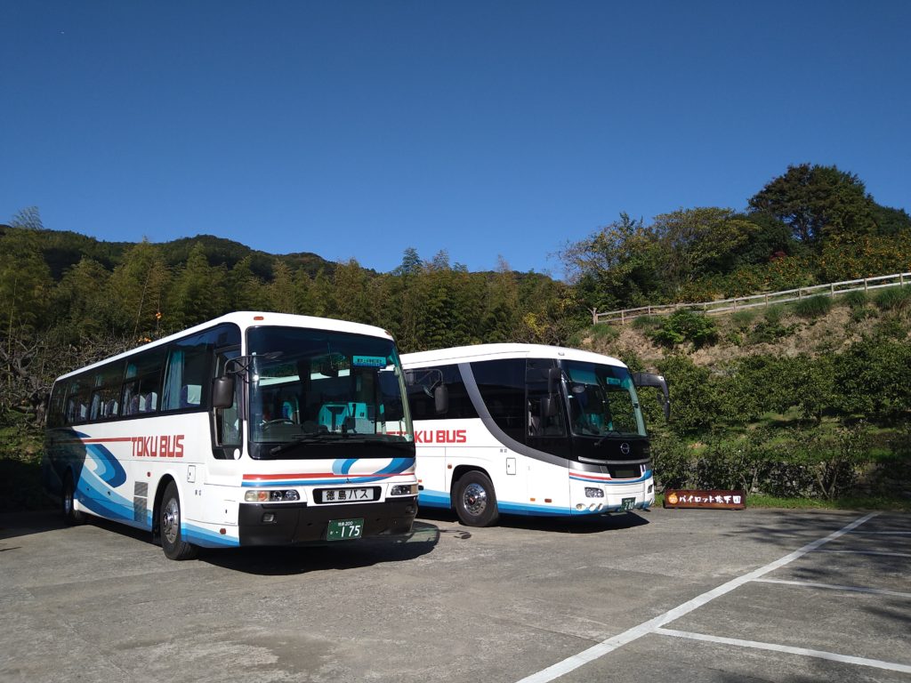【徳島方面から来られる方】徳島駅から国道55線を阿南方向に南下し(約7㎞)、勝浦川にかかっている「勝浦川橋」を渡ってすぐの信号を右折。その後、勝浦川に沿って上勝・勝浦方面へ進み(約9㎞)、石原バス停を左折し(標示看板あり)、標示に沿ってみかん園まで約1.3㎞。